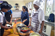 The curriculum covers basic cooking methods, kitchen organization, food commodities, hygiene and sanitation, menu planning, cost control, and inventory management. Students also develop entrepreneurship and customer service skills through hands-on activities and project-based learning.