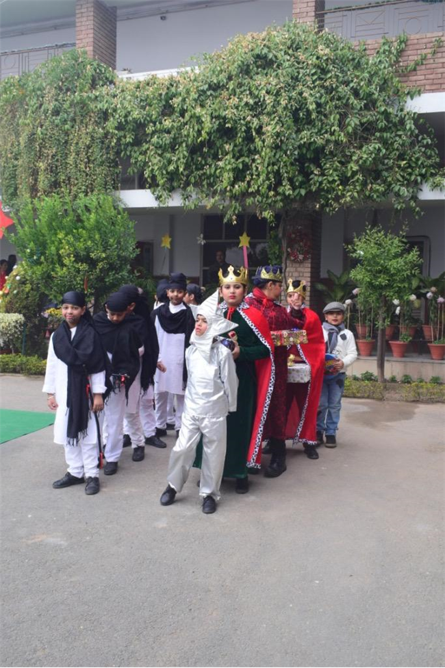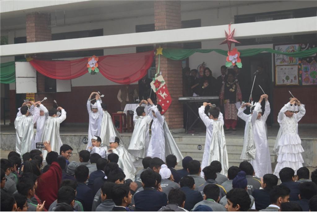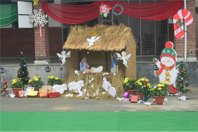 Senior boys narrated the Nativity story while Class 3 students enacted the scenes. Integrated with