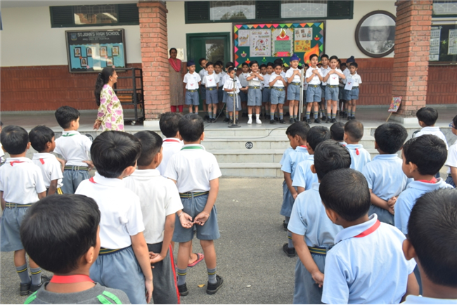 consisted of a hymn, lines on the topic, health and discipline tips, thought for the day, a poem and the thanks